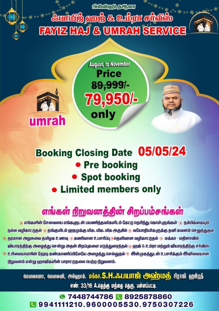 At Fayiz Hajj & Umrah, we specialize in seamless and spiritually enriching Umrah journeys. From planning to completion, we provide trusted guidance, personalized care, and comfortable arrangements for individuals, families, and groups, ensuring peace of mind, safety, and a truly fulfilling pilgrimage experience.